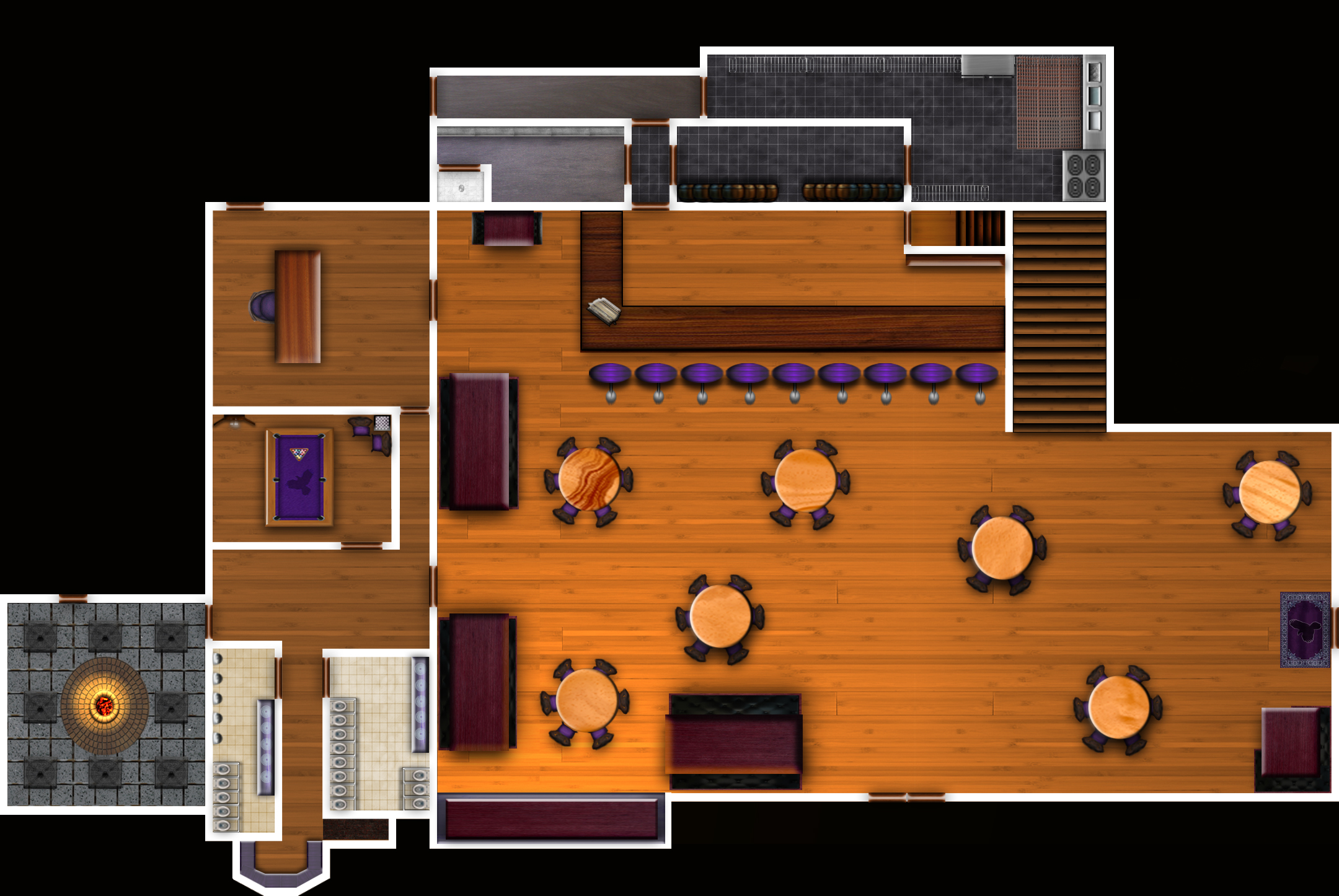 Veta thought, approaching her establishment should be a pleasant experience with the floral scents as well as appearance. Inside, the tavern is with wooden polished floors, heirloom tapestries hanging from the walls, rustic but quaint wooden tables and chairs as well as booths..each table has a cloth draped over and accented with a candle, over to one side of the tavern area is a wooden bar with a glossy surface, behind a large wall mirror, with a platform underneath the mirror that displays the rows of bottled alcohol.
